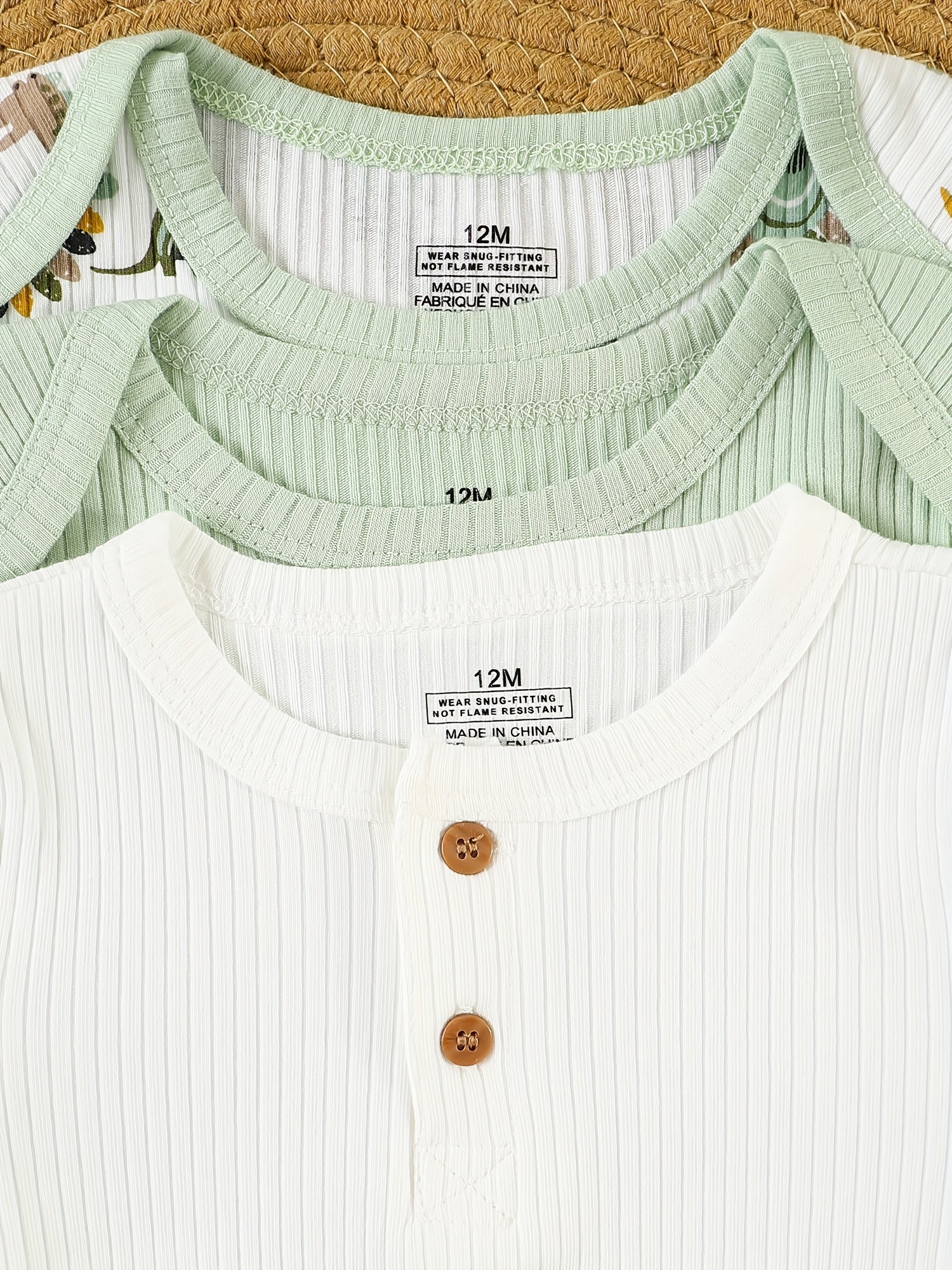 Com fechos práticos, as trocas ficam muito mais rápidas e fáceis, tornando este kit um essencial no guarda-roupa do bebê.